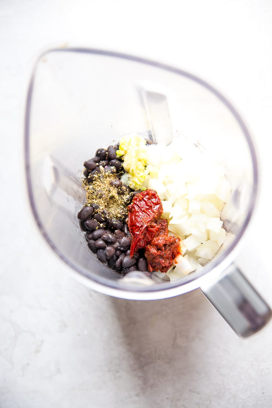- Add the canned beans and liquid, onion, garlic, chipotle peppers, salt, pepper, cumin, oregano to a blender. Puree until smooth.