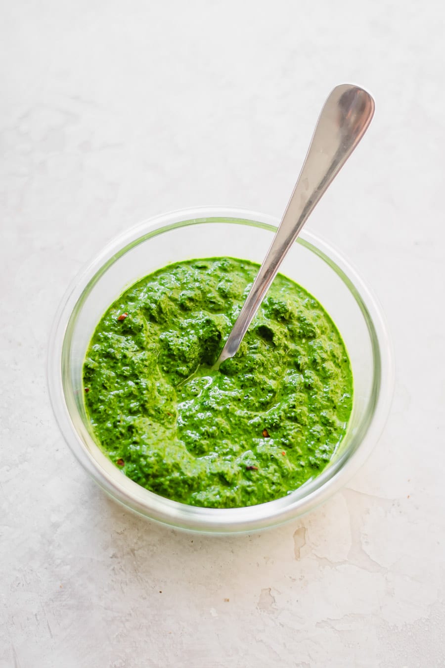 - Store excess green kale sauce in an air-tight container in the fridge for 7-10 days.