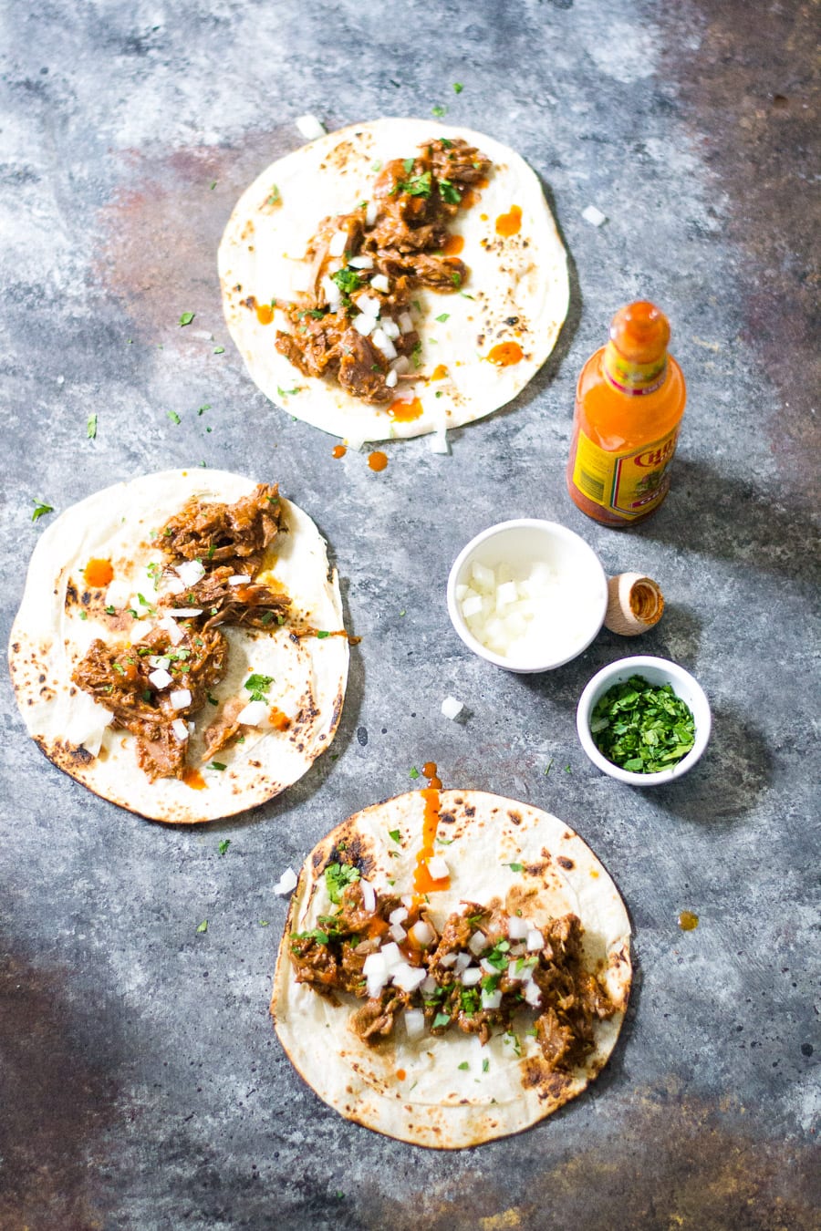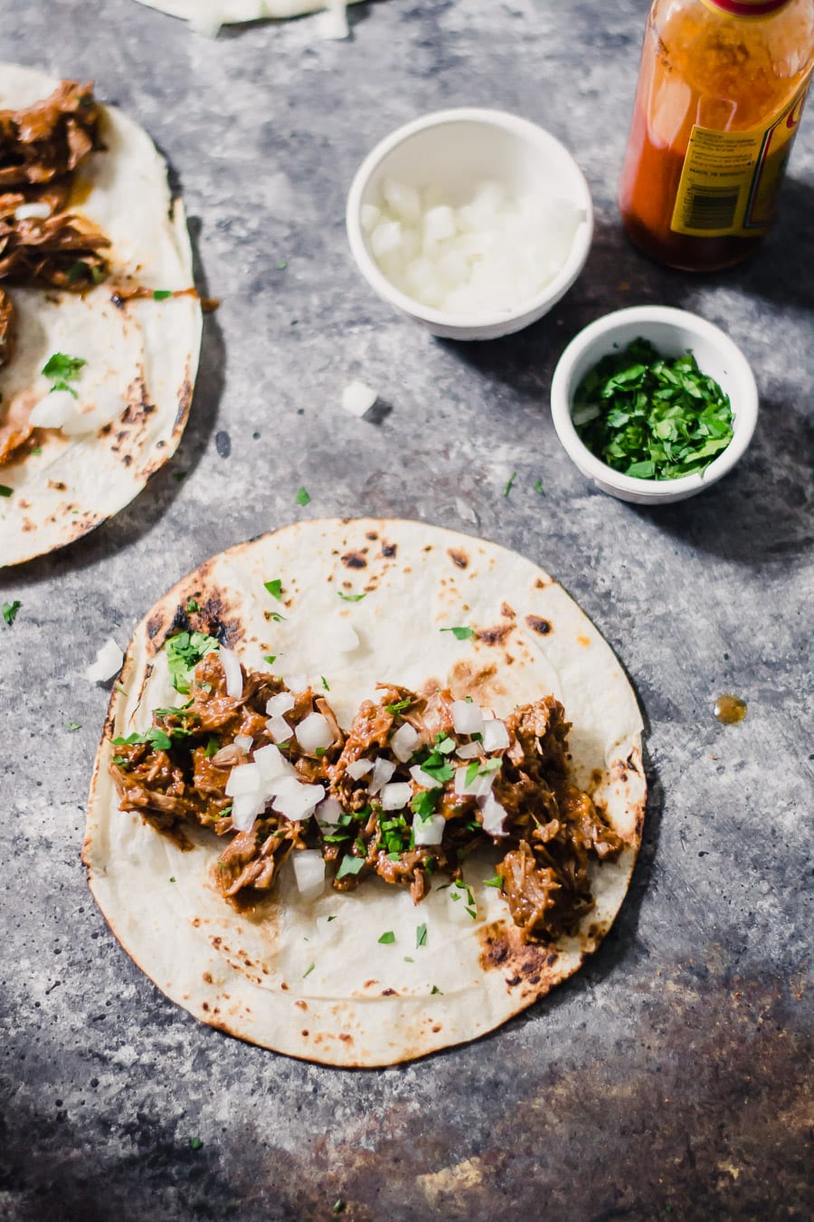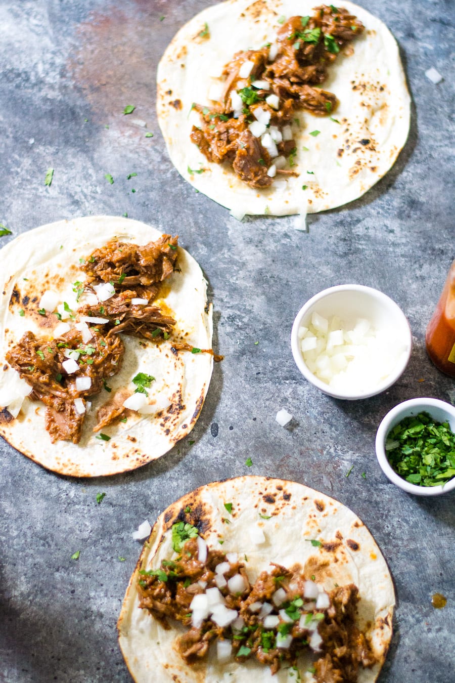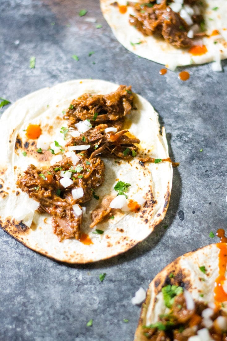 Slow cooker beef barbacoa is made from chuck roast and slow cooked with a bunch of different chilies and onion until super tender. It simplifies the traditional barbacoa recipe and makes it easier to make any night of the week.