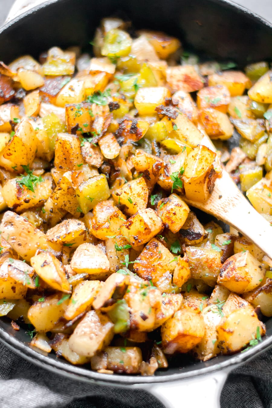 Classic skillet breakfast potatoes are my favorite breakfast or brunch side. Crispy potatoes and caramelized bell peppers all in one skillet. Serve with your favorite egg, bacon, sausage, or all of the above.