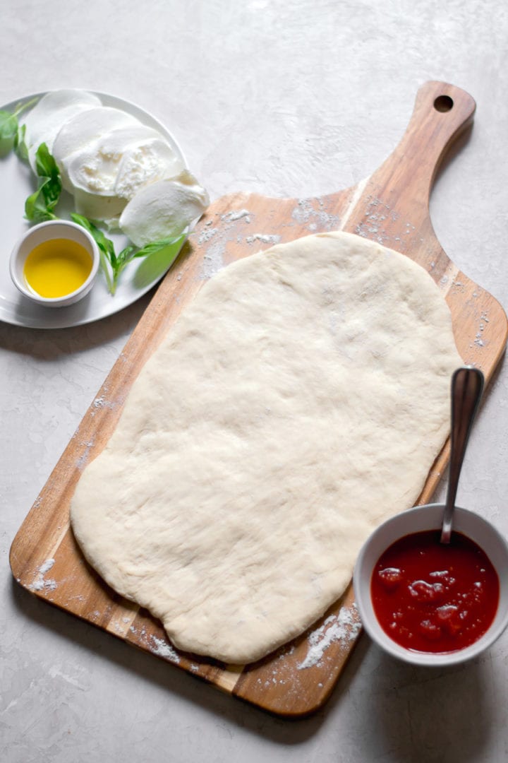- Prepare your pizza dough according to the packages instructions. If you bought dough from the store, make sure it sits at room temperature while the grill preheats so it isn't cold anymore. This will make it easier to work with.