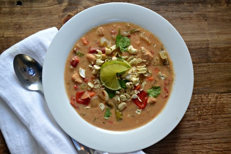 An easy take on chicken tortilla soup that uses red enchilada sauce and Mexican beer as the base for the soup.
