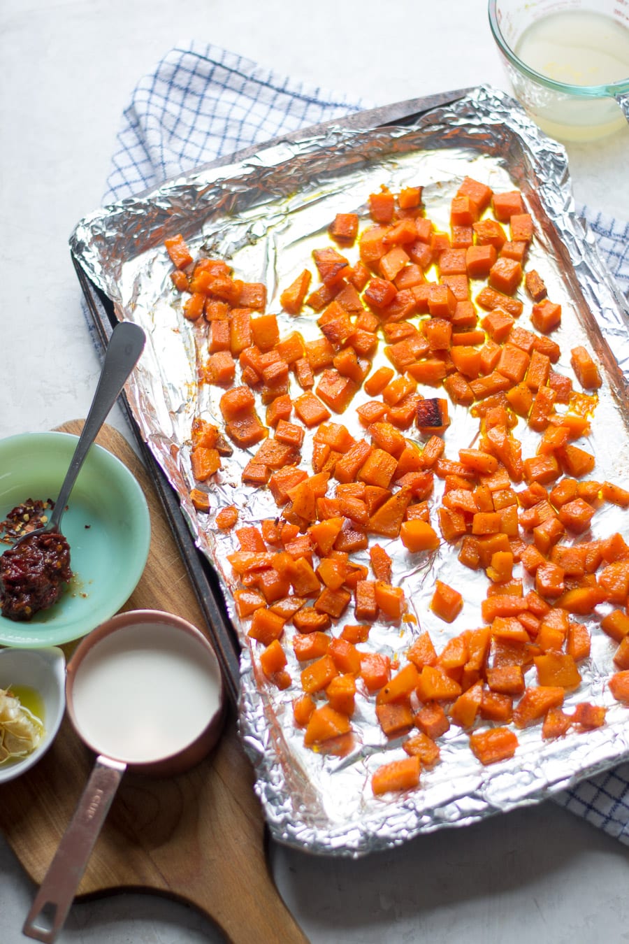 - 1 butternut squash, peeled, seeds removed, and chopped