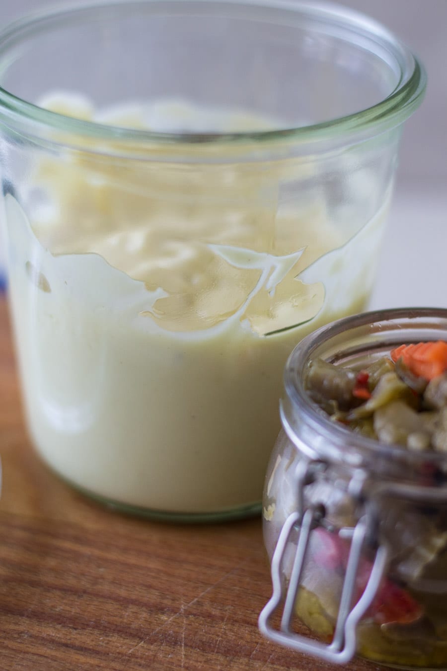 - To make the aioli, combine all the ingredients in a 16oz, wide- mouth jar. Use an immersion blender to blend everything until smooth, combined and a mayo consistency appears.