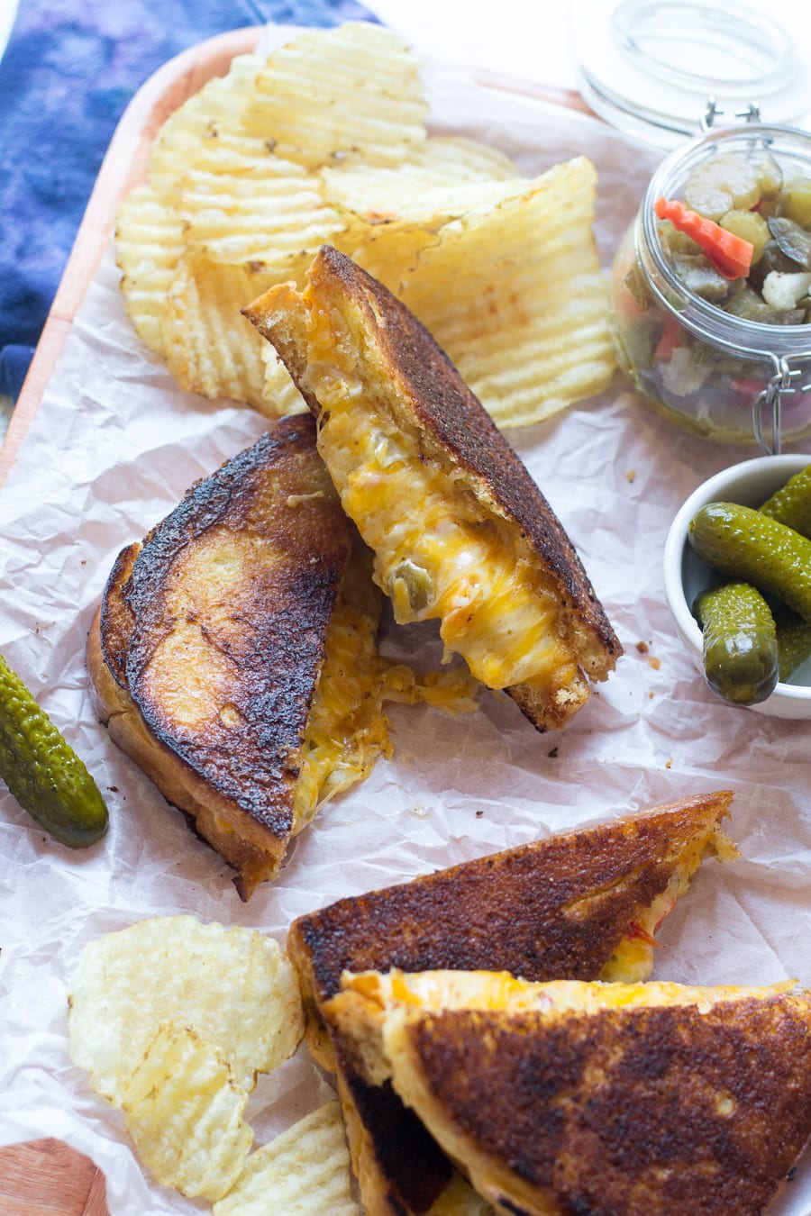 Think of the filling to the grilled cheese as pimento cheese sort of.