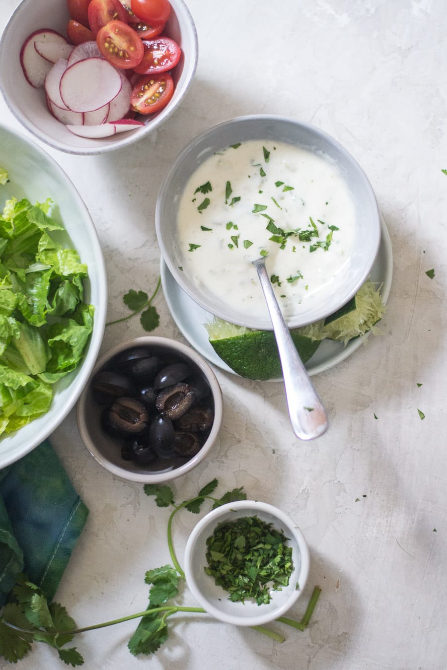 I mix together ranch with lime juice, fresh chopped cilantro, and a tablespoon of minced, pickled jalapeños.