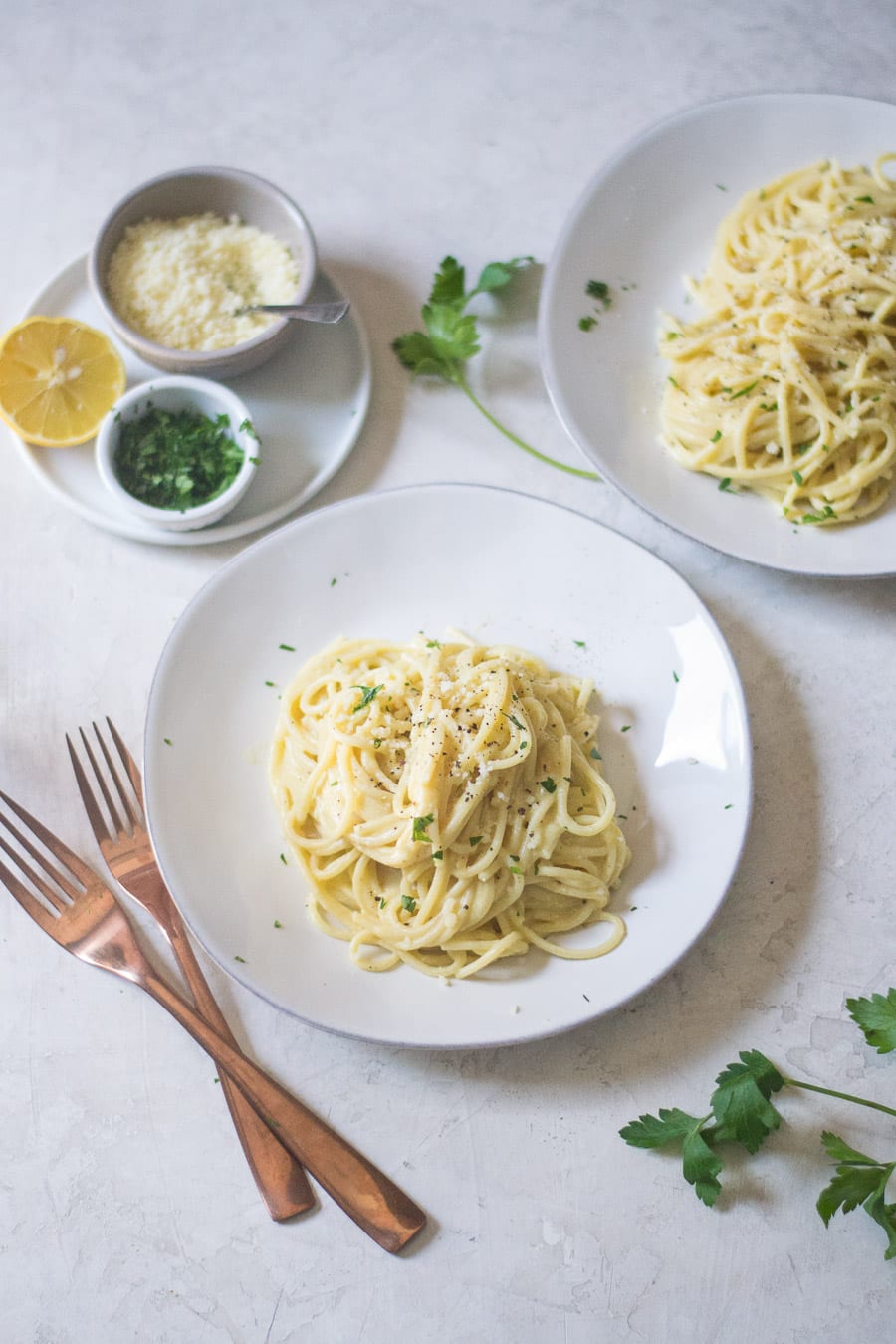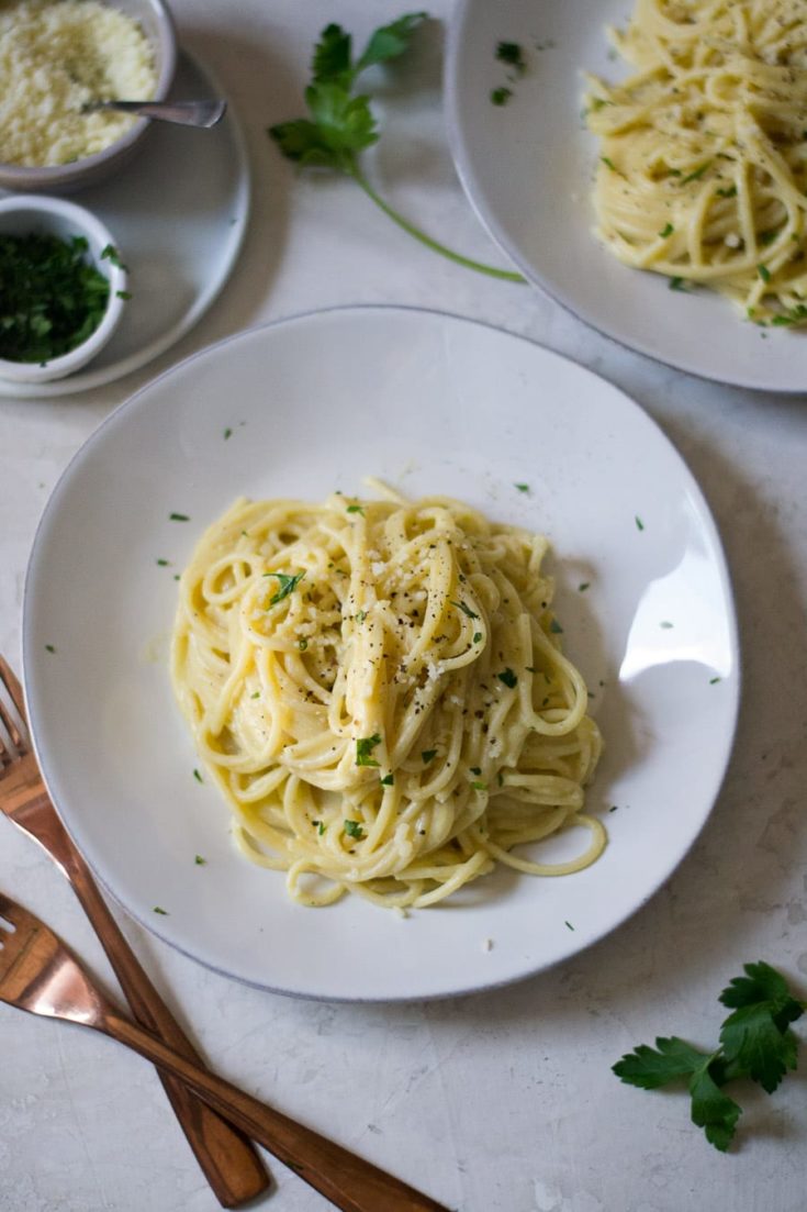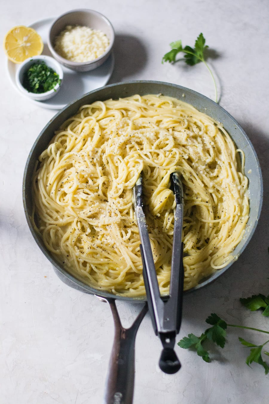 I like to add more cheese, lots of black pepper, and fresh chopped parsley to the finished pasta.
