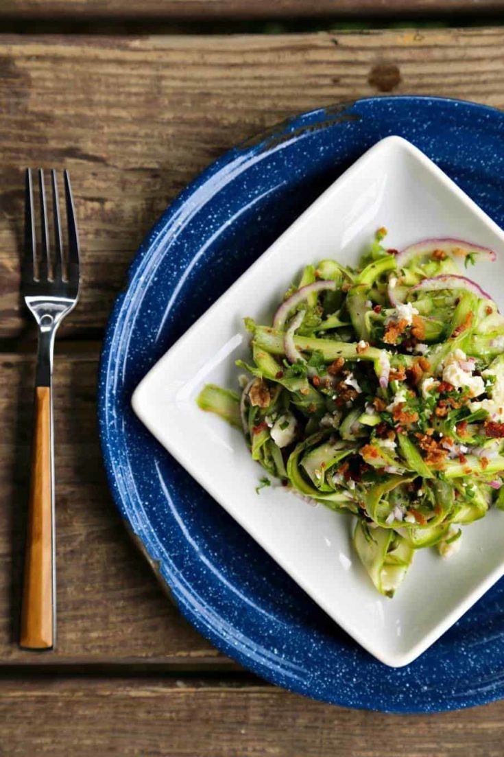 Shaved Asparagus Salad with Bacon, Blue Cheese, and Buttermilk Vinaigrette