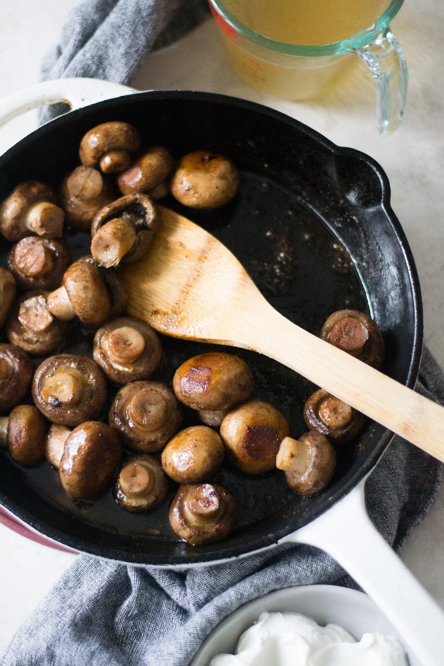 If you want more of the mushroom caramelized, feel free to cut the mushrooms in half before cooking.