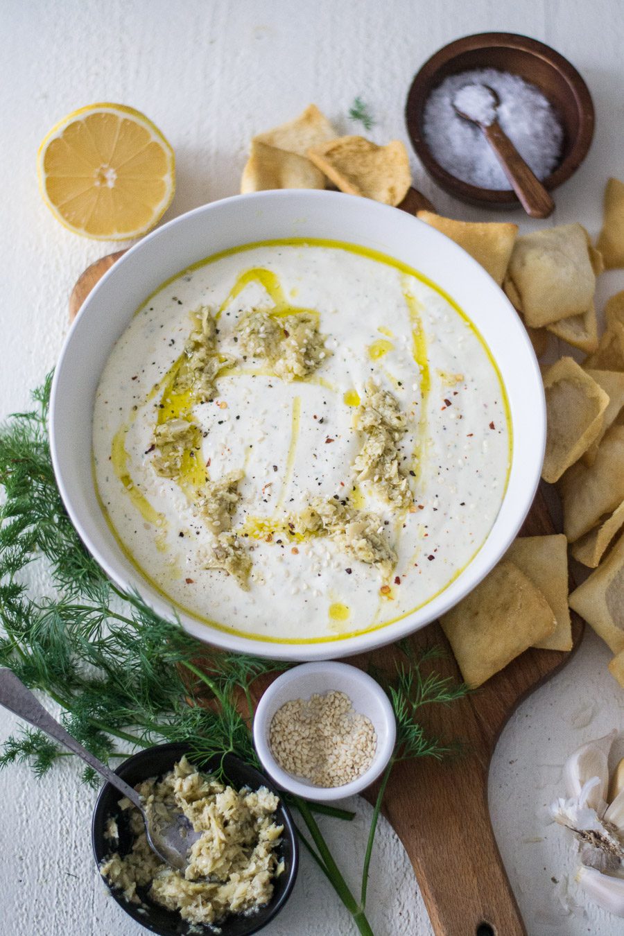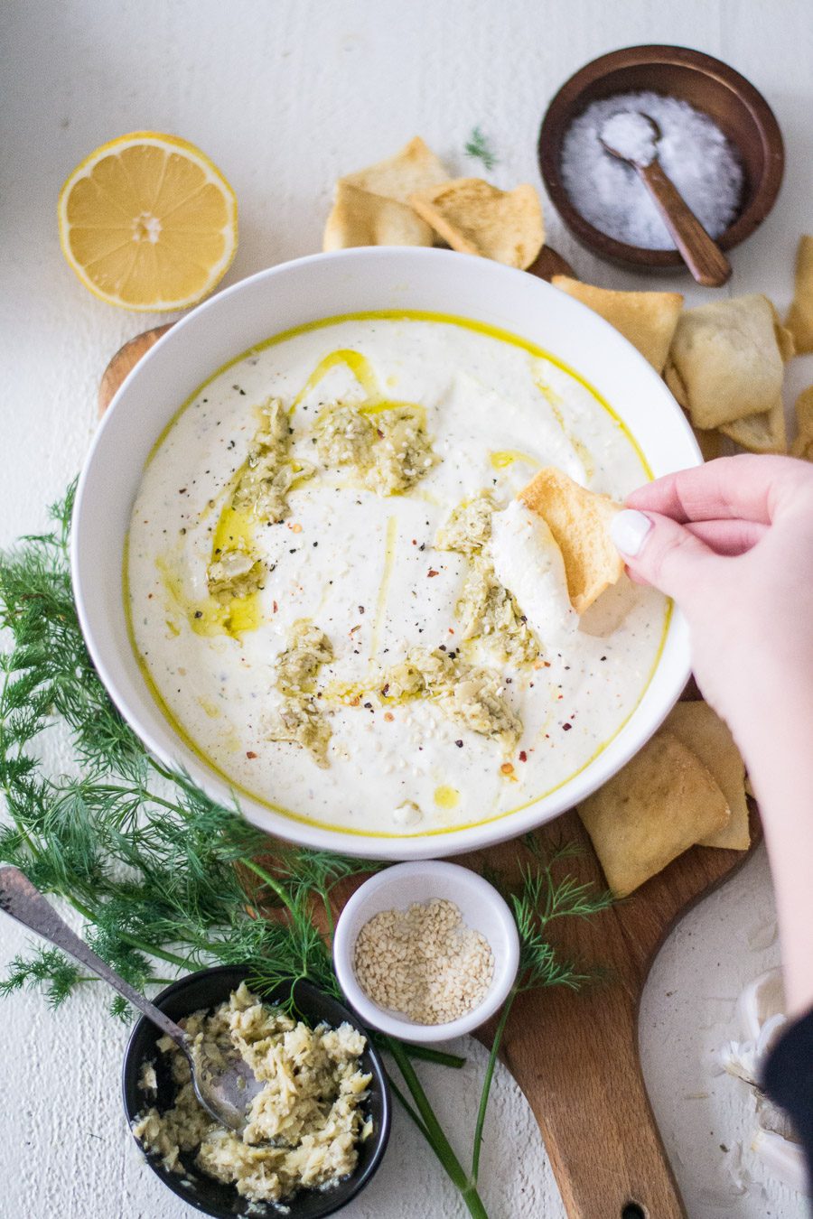 You can also add some extra-virgin olive oil, sesame seeds, crushed red pepper flakes, and a little fresh dill to the top of the dip.