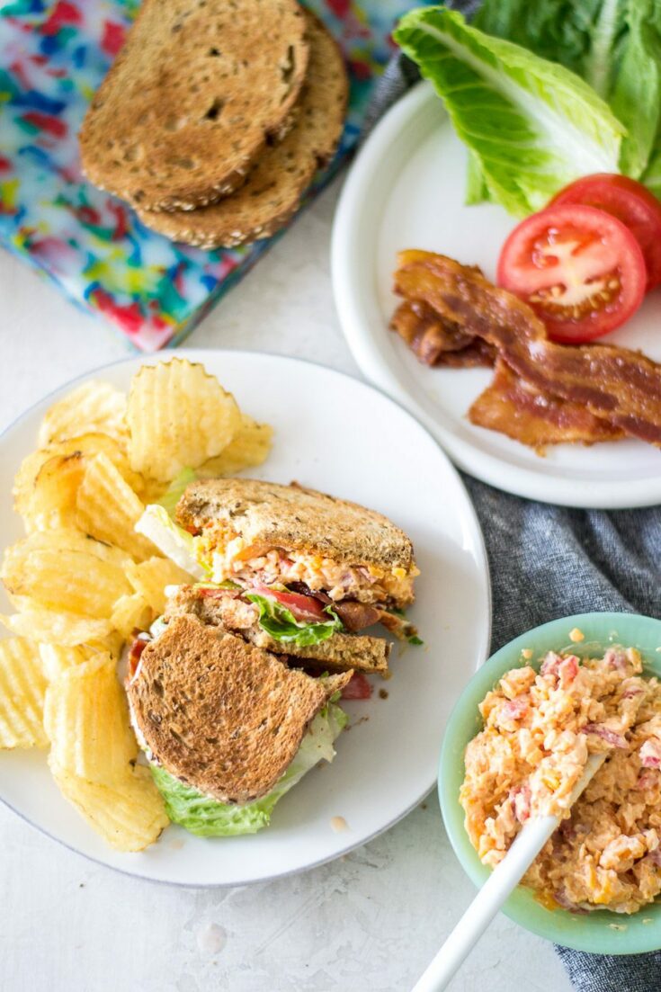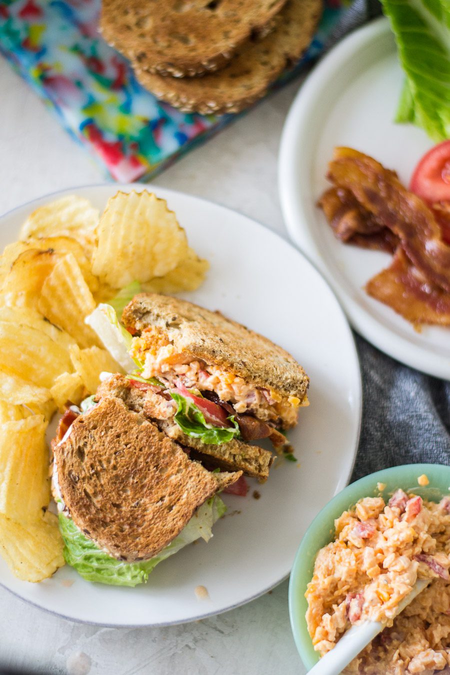 I wanted a twist to the traditional pimento cheese for this pimento cheese BLT sandwich.