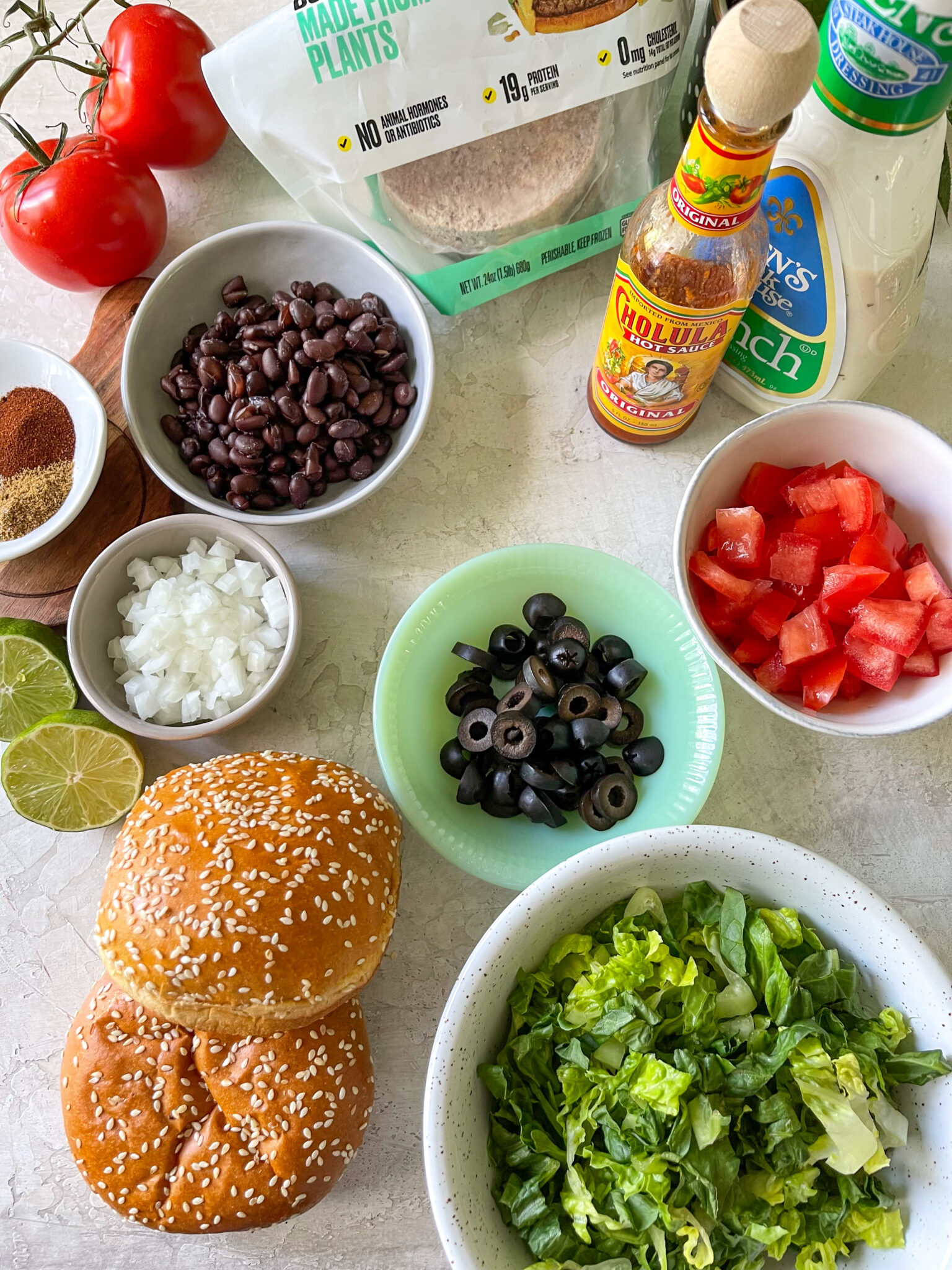 This recipe came to fruition because I really wanted to try to condense all the salad fixings into taco salad veggie burgers.