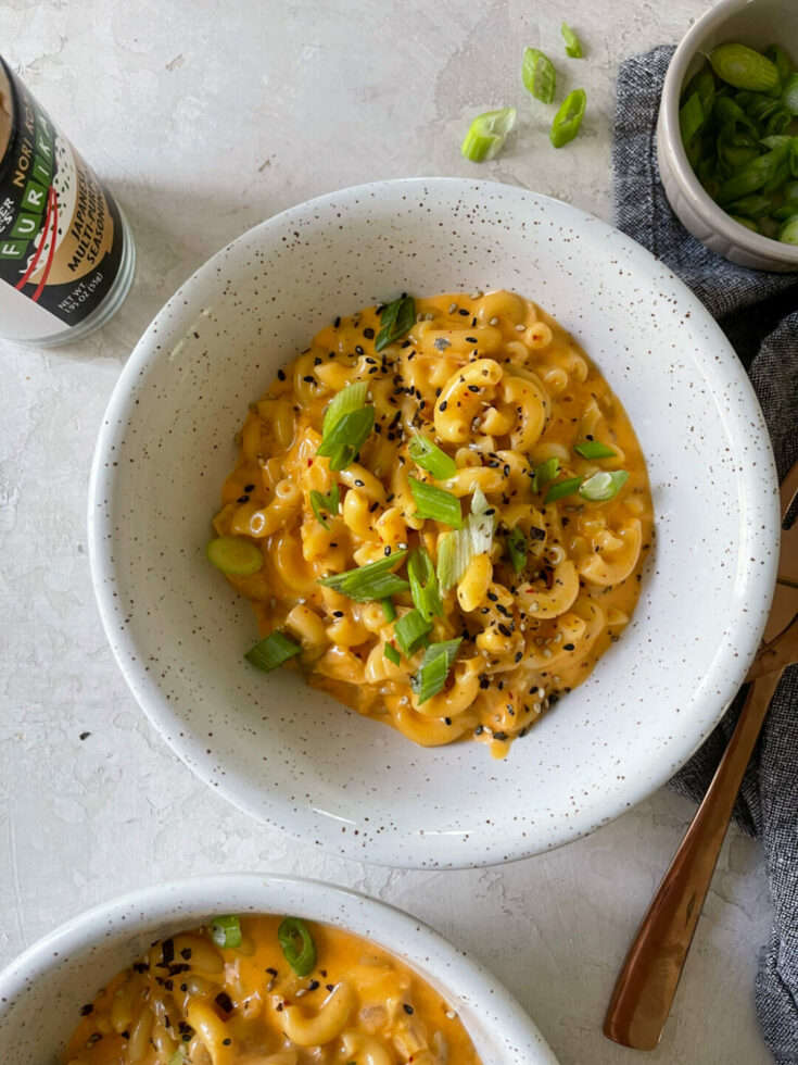 If you want a spicier mac and cheese you can always mix in some Sriracha or top the mac and cheese with it at the end.